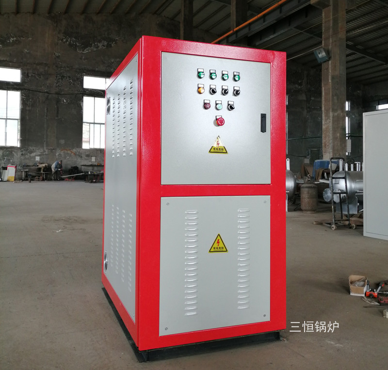 电热蒸汽发生器,包括蒸汽筒体和加热装置,所述的加热装置包括螺旋状的加热体,所述的蒸汽筒体外侧设有温度传感器和水位传感器,温度传感器和水位传感器均与控制装置连接,所述的蒸汽筒体顶端设有蒸汽口,所述的蒸汽筒体上端设有入水口,蒸汽筒体下端设有出水口。